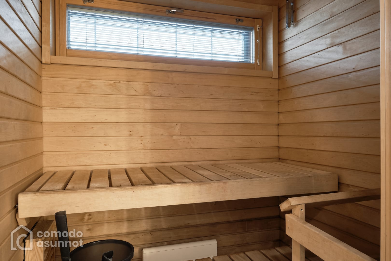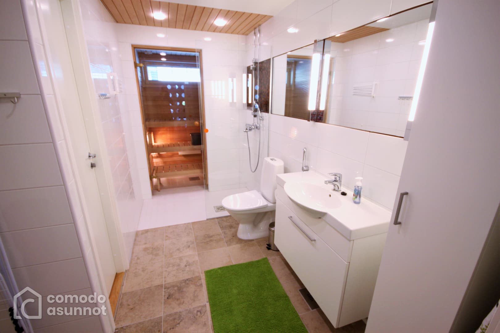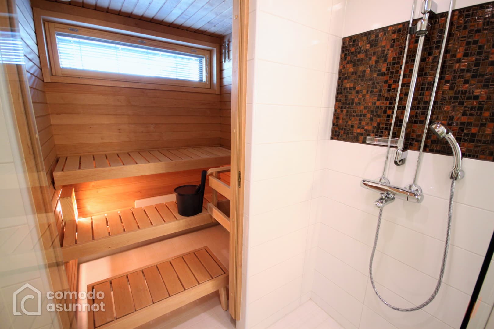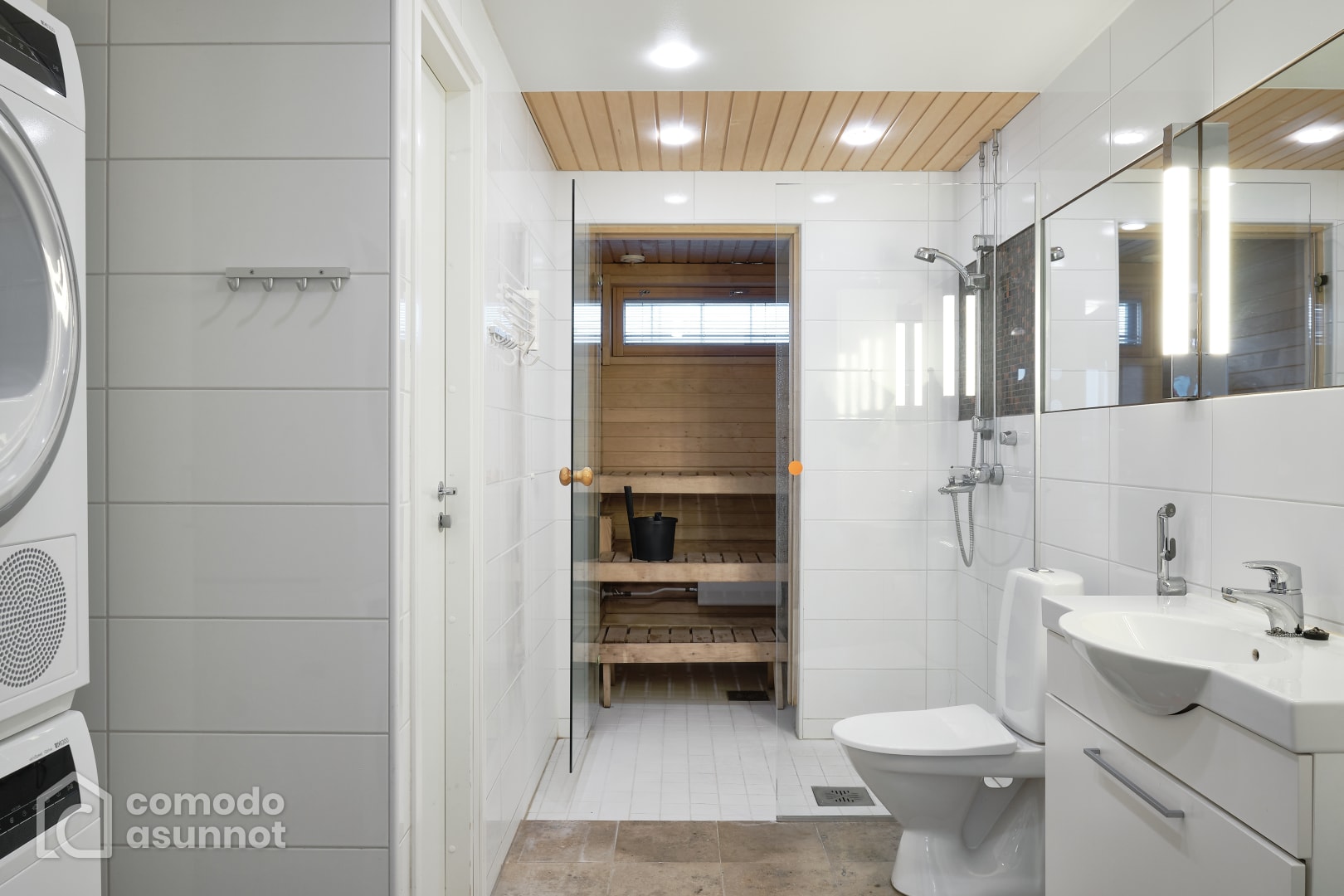 Moderni, saunallinen, kahden makuuhuoneen asunto Kalasatamassa.